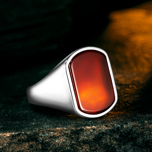 925 Sterling Silver Modern Red Agate Stone Men's Ring