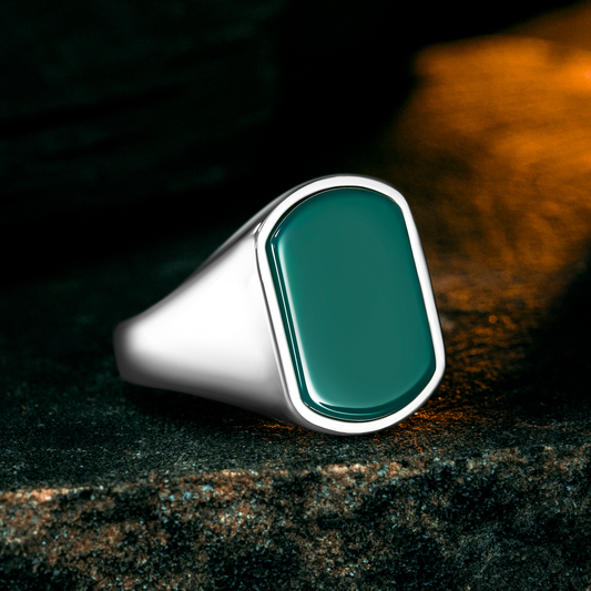 925 Sterling Silver Modern Green Agate Stone Men's Ring