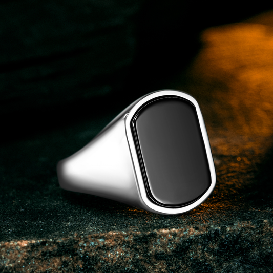 925 Sterling Silver Modern Black Onyx Stone Men's Ring