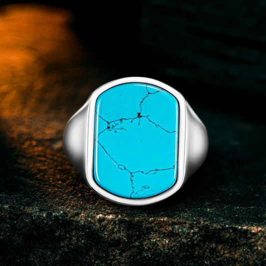 925 Sterling Silver Modern Blue Turquoise Stone Men's Ring