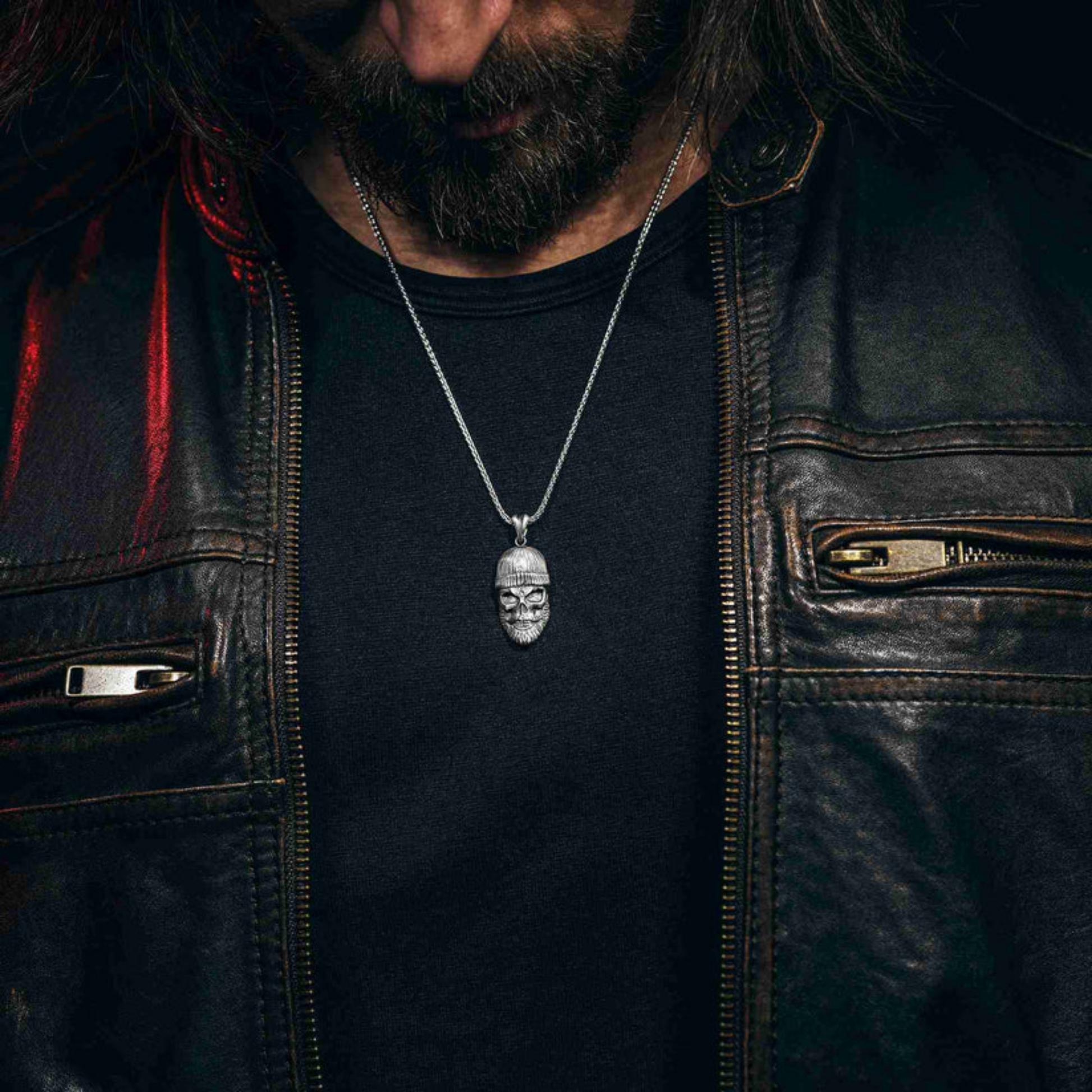 925 Ayar Gümüş Art Kafatası Erkek Kolye