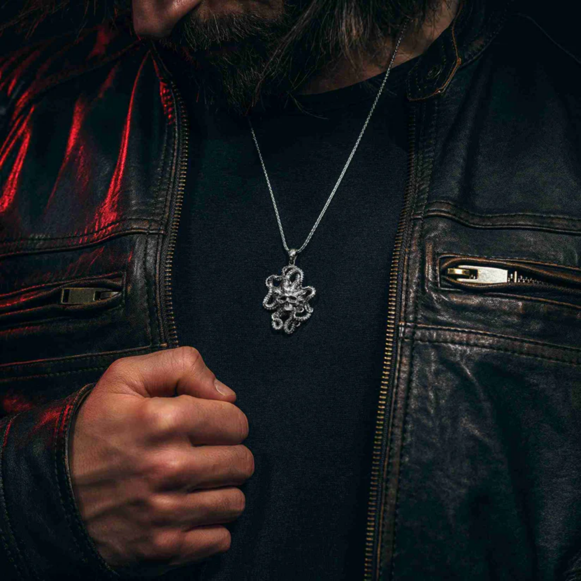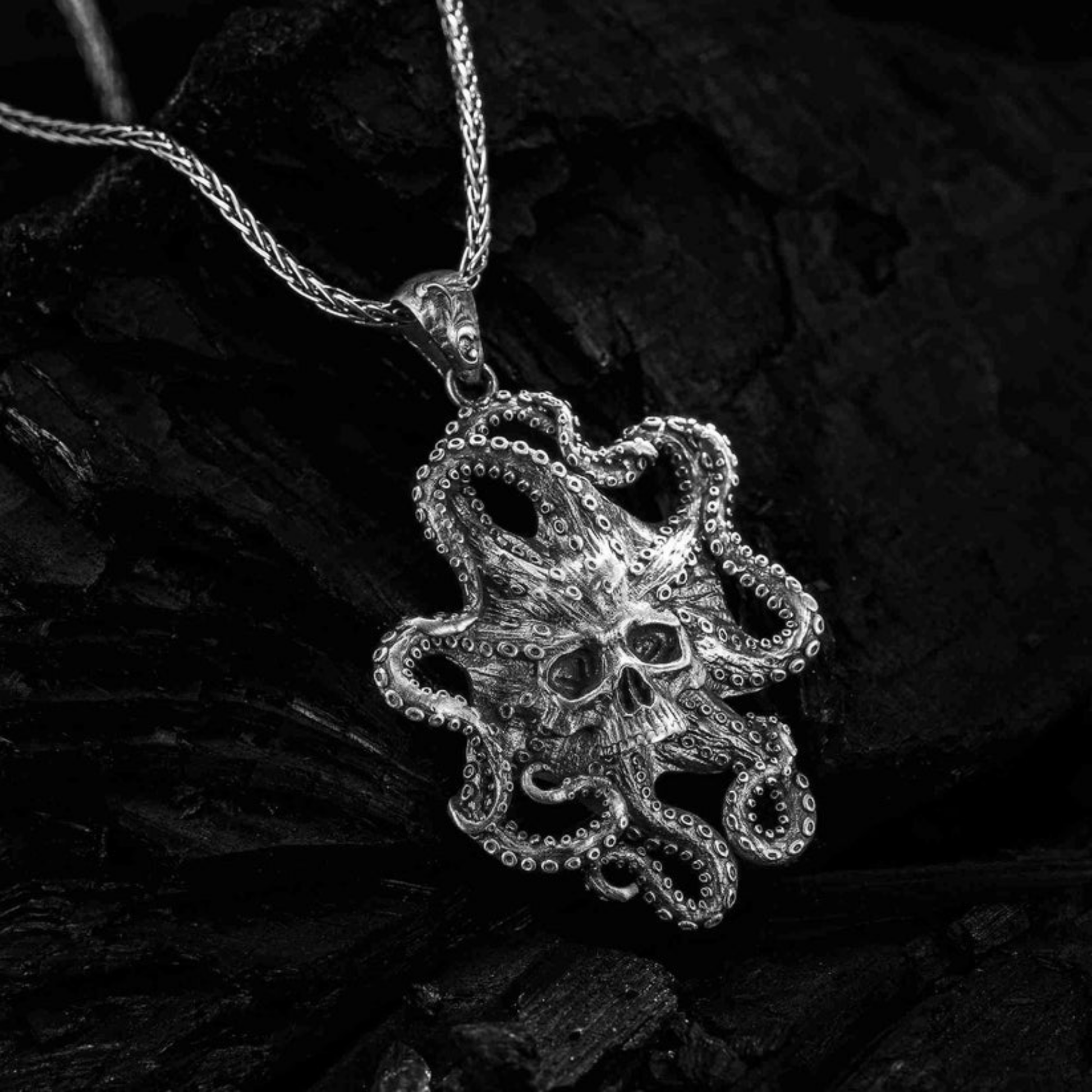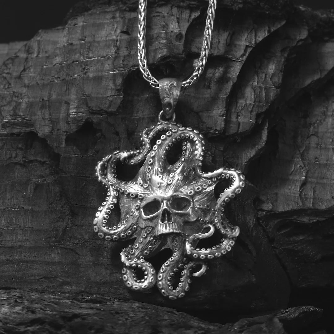 925 Ayar Gümüş Kafatası Ahtapot Erkek Kolye